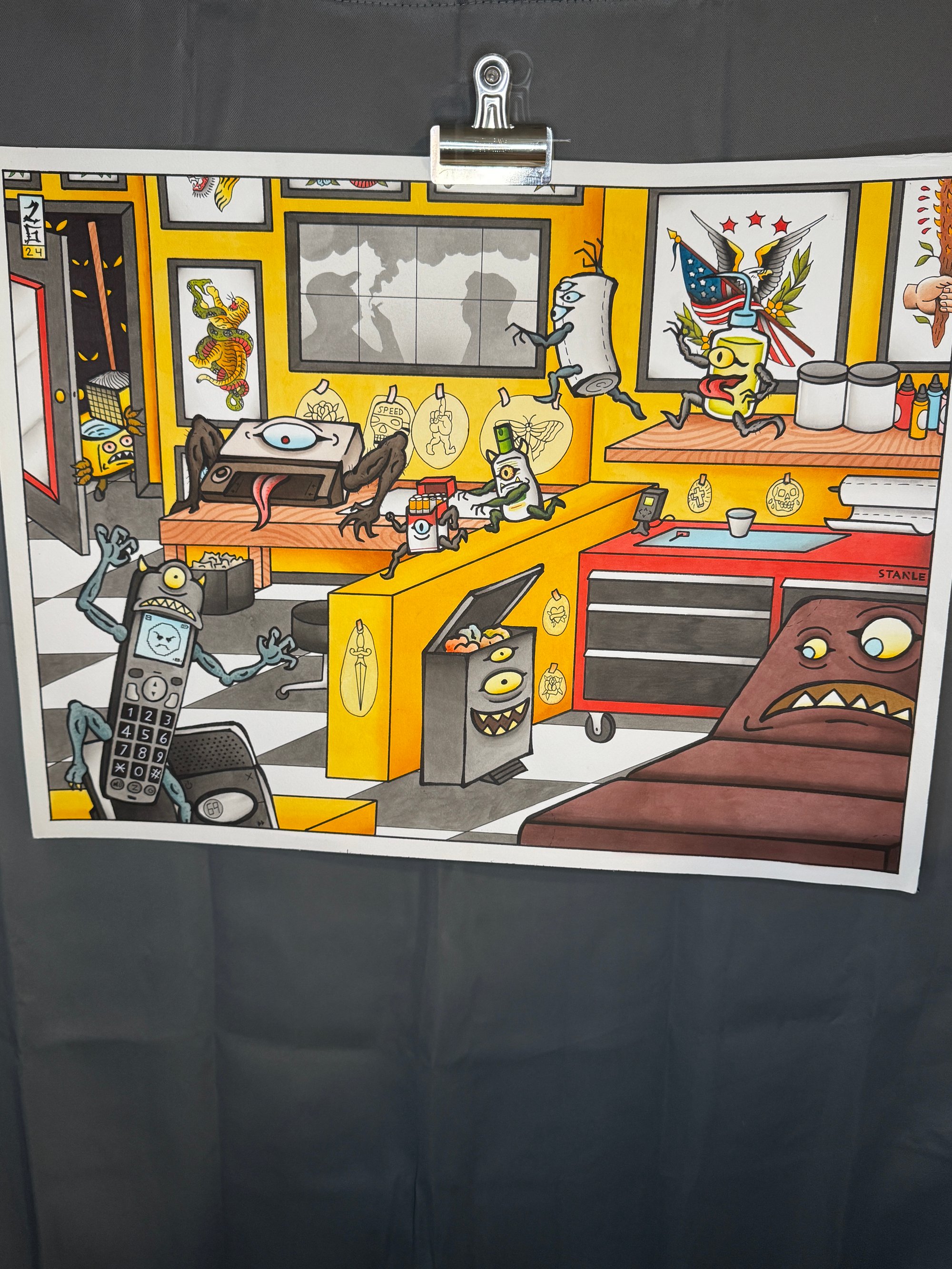Who keeps moving the shop phone? Original painting. 18x24in on Arches watercolor paper.